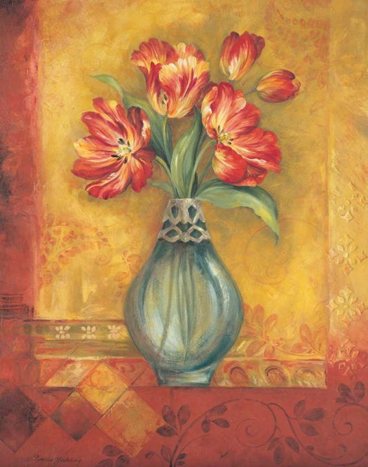 Pandoras Tulips White Modern Wood Framed Art Print with Double Matting by Gladding, Pamela