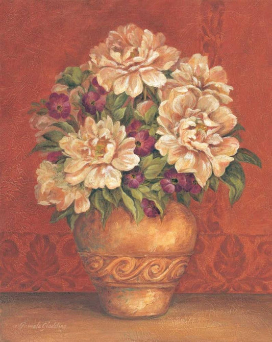 Tuscan Peonies White Modern Wood Framed Art Print with Double Matting by Gladding, Pamela