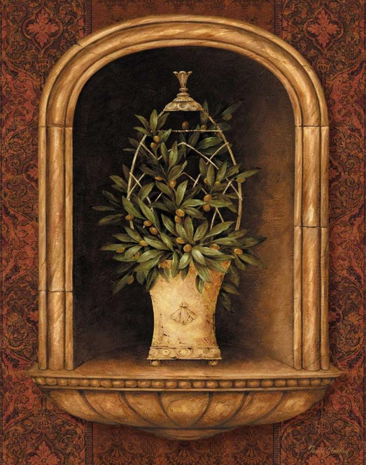 Olive Topiary Niches I White Modern Wood Framed Art Print with Double Matting by Gladding, Pamela