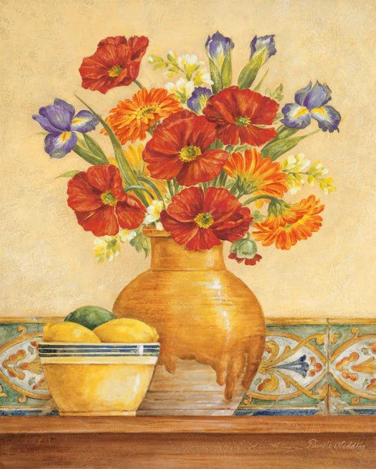 Poppies and Indigo I White Modern Wood Framed Art Print with Double Matting by Gladding, Pamela