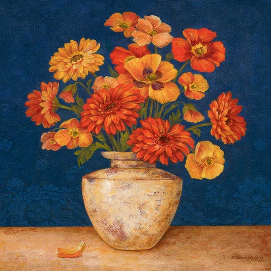 Poppies and Indigo II White Modern Wood Framed Art Print with Double Matting by Gladding, Pamela
