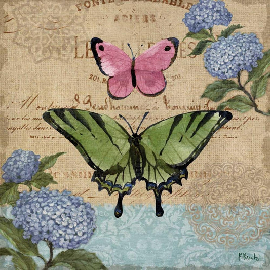 Burlap Butterflies I White Modern Wood Framed Art Print with Double Matting by Brent, Paul