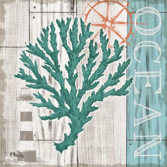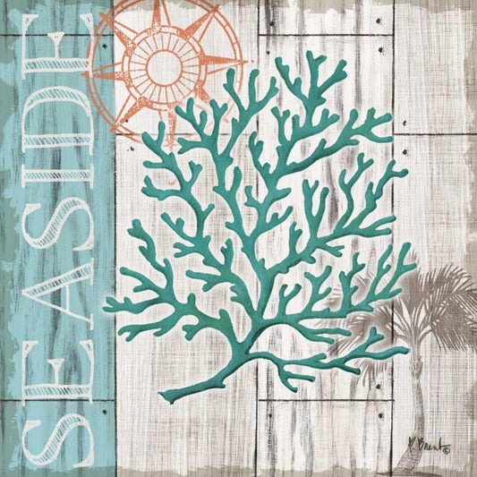 Sea Glass Palm I White Modern Wood Framed Art Print with Double Matting by Brent, Paul
