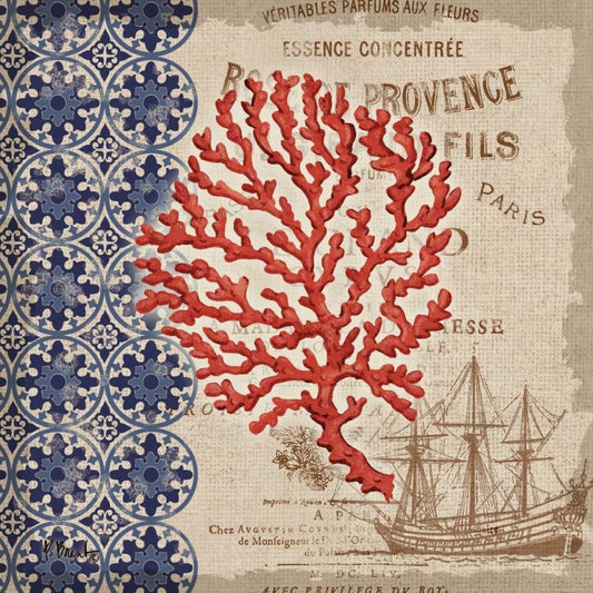 Burlap Coral II White Modern Wood Framed Art Print with Double Matting by Brent, Paul