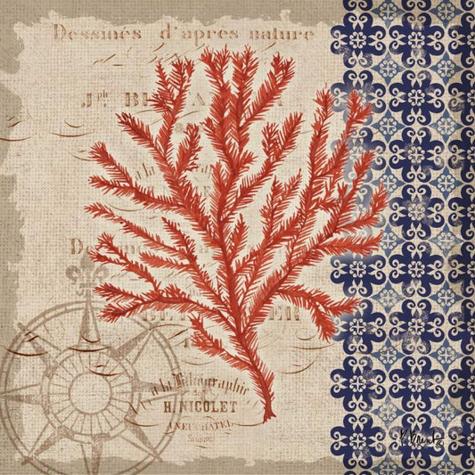 Burlap Coral IV White Modern Wood Framed Art Print with Double Matting by Brent, Paul