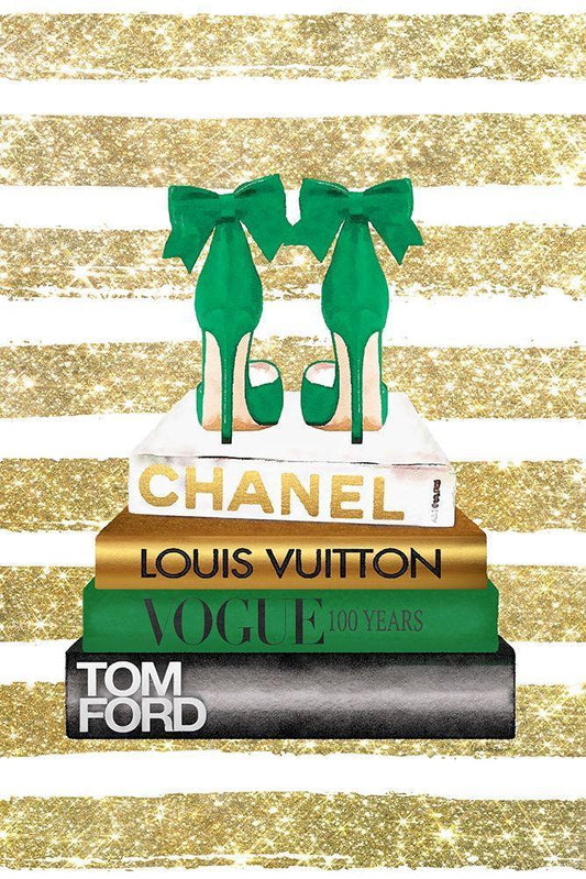 Bookstack Green Heel White Modern Wood Framed Art Print with Double Matting by Amanda Greenwood
