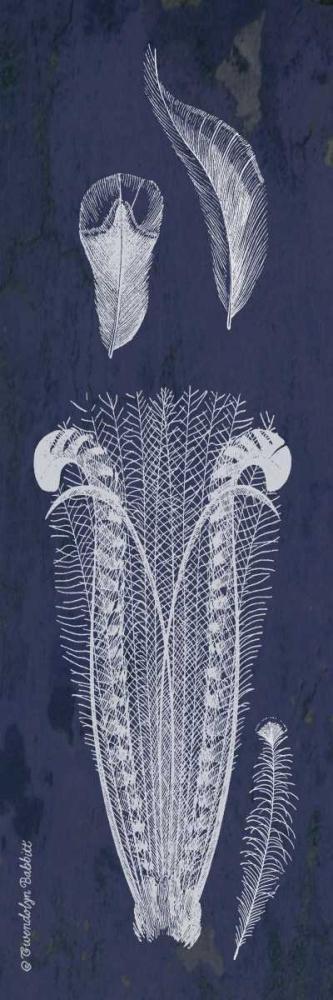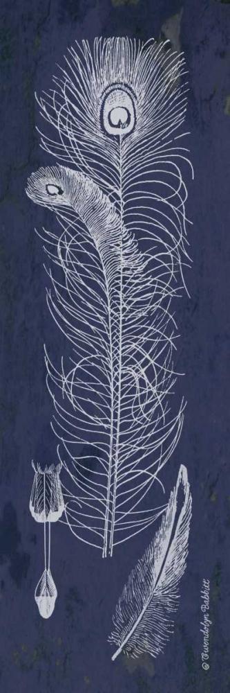 Indigo Feathers III White Modern Wood Framed Art Print with Double Matting by Babbitt, Gwendolyn