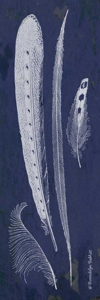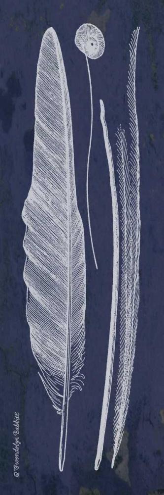 Indigo Feathers I White Modern Wood Framed Art Print with Double Matting by Babbitt, Gwendolyn