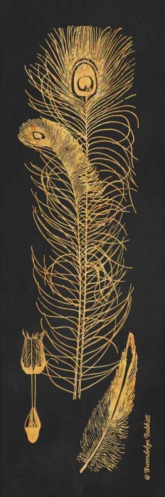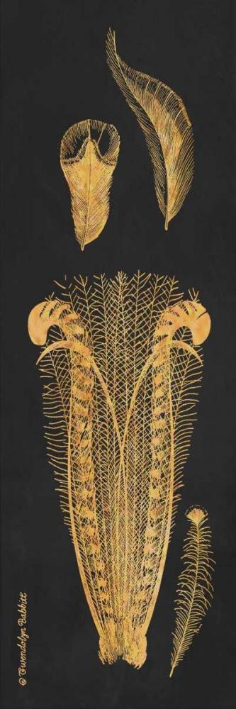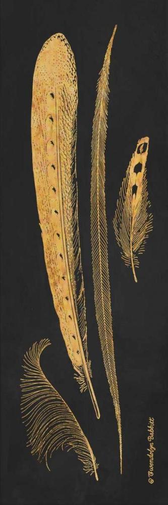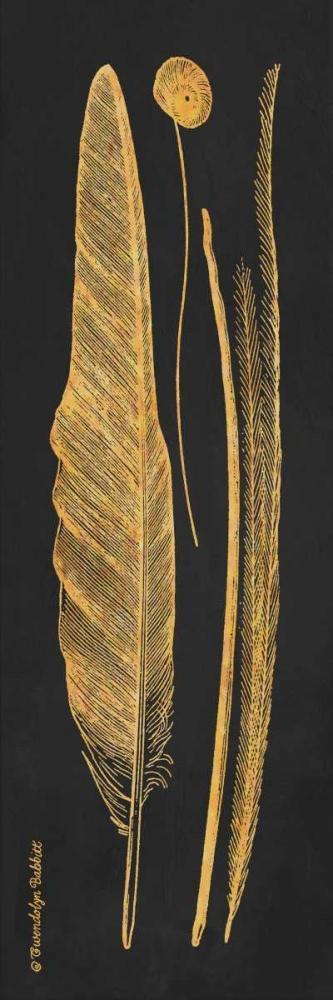 Gold Feathers I White Modern Wood Framed Art Print with Double Matting by Babbitt, Gwendolyn