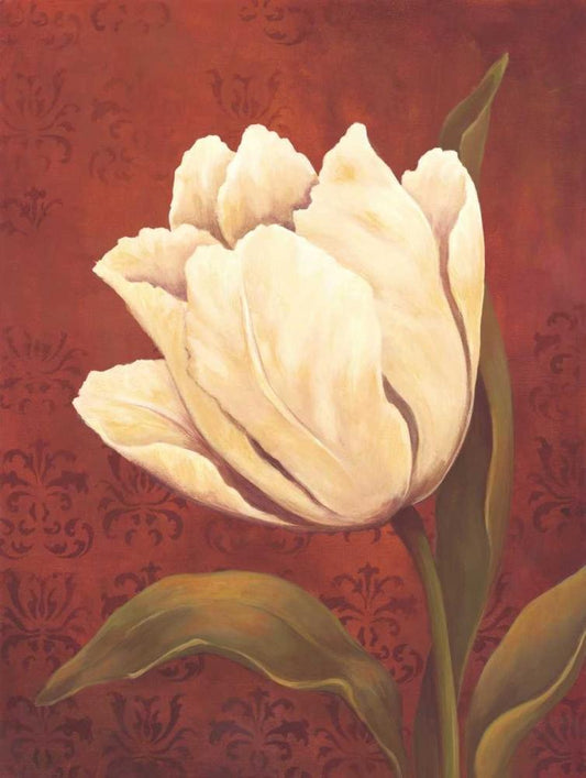 Tulip on Red White Modern Wood Framed Art Print with Double Matting by Belamar, Ella