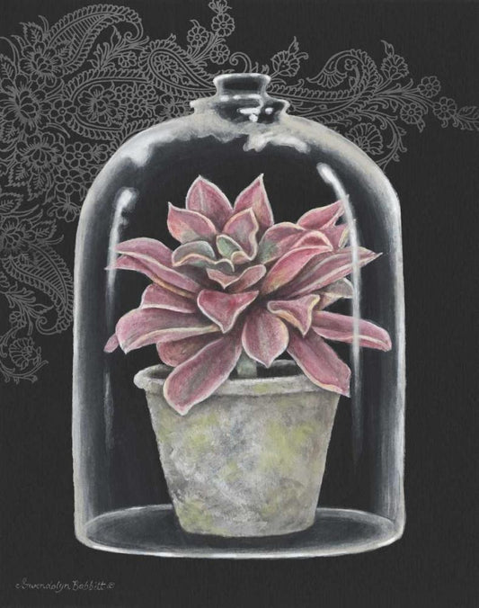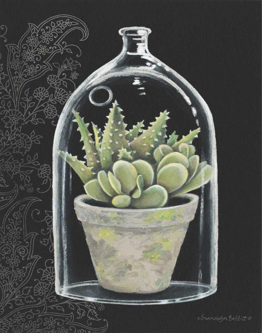 Succulent in Cloche III White Modern Wood Framed Art Print with Double Matting by Babbitt, Gwendolyn