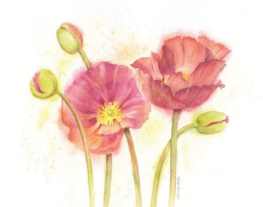 Happy Poppies White Modern Wood Framed Art Print with Double Matting by Babbitt, Gwendolyn