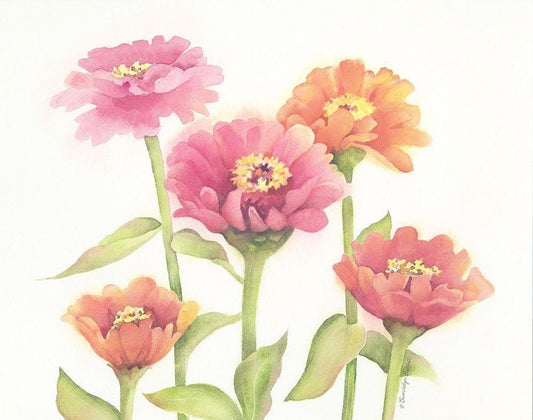 Happy Zinnias White Modern Wood Framed Art Print with Double Matting by Babbitt, Gwendolyn