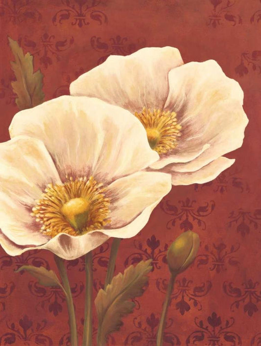 Poppies on Red White Modern Wood Framed Art Print with Double Matting by Belamar, Ella