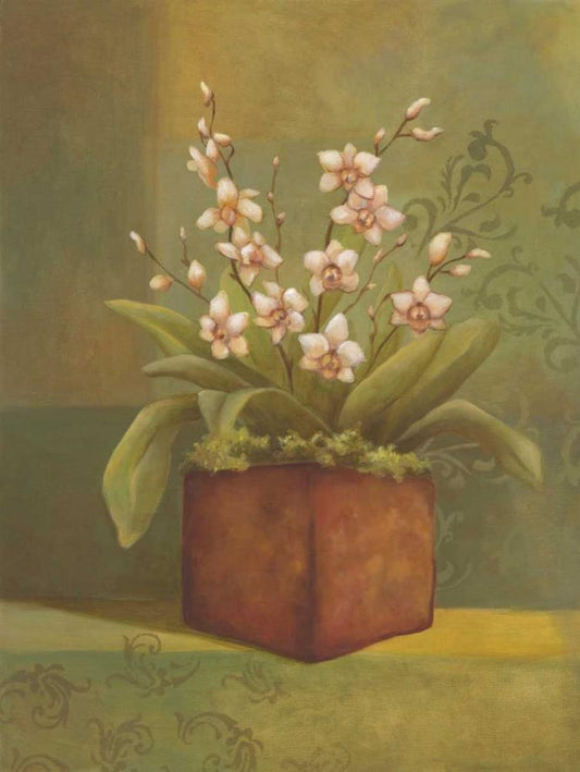 Orchids I White Modern Wood Framed Art Print with Double Matting by Belamar, Ella