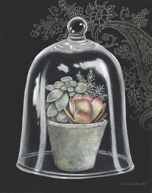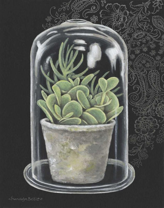 Succulent in Cloche I White Modern Wood Framed Art Print with Double Matting by Babbitt, Gwendolyn