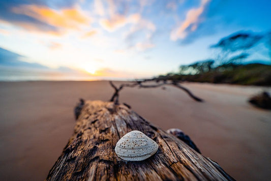 She Sells Seashells White Modern Wood Framed Art Print with Double Matting by Malone, Will