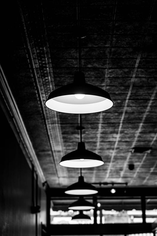 Hanging Lights White Modern Wood Framed Art Print with Double Matting by Malone, Will