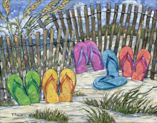Impressions of Flip Flops White Modern Wood Framed Art Print with Double Matting by Brent, Paul
