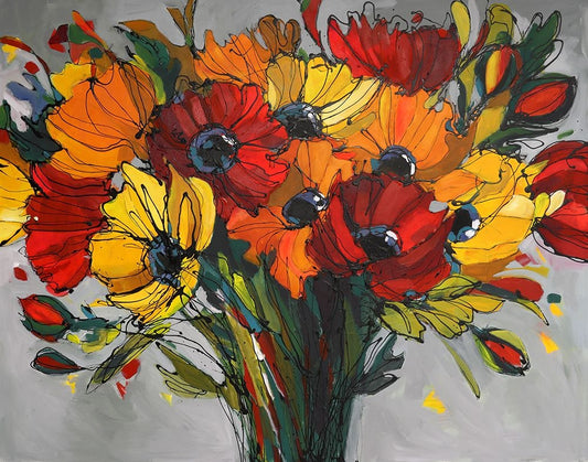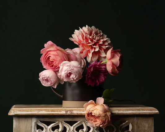 Vibrant Still Life I Black Ornate Wood Framed Art Print with Double Matting by Kouta, Flora
