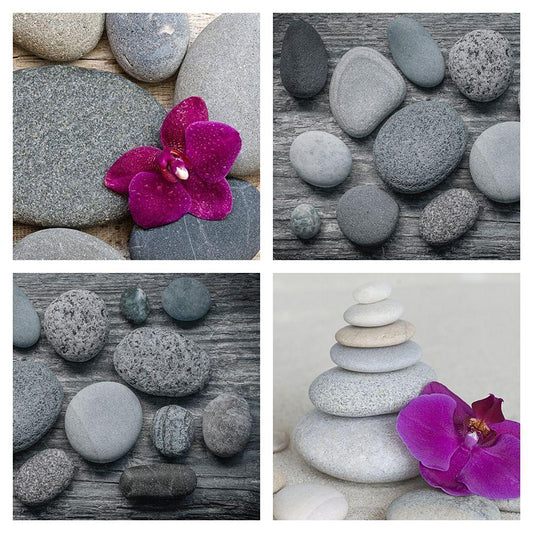 Zen Pebble Relax Collage Black Ornate Wood Framed Art Print with Double Matting by Haase, Andrea