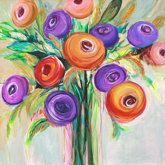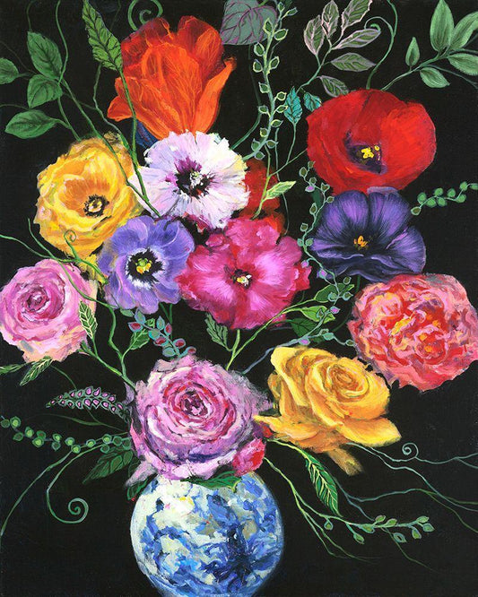 Flower Jamboree Black Ornate Wood Framed Art Print with Double Matting by Joy, Julie