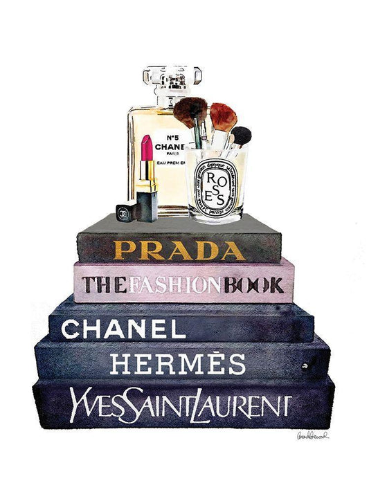 Book Stack Makeup White Modern Wood Framed Art Print with Double Matting by Greenwood, Amanda
