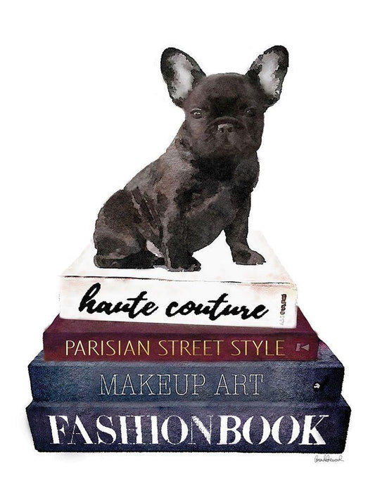 Bookstack Frenchie White Modern Wood Framed Art Print with Double Matting by Greenwood, Amanda