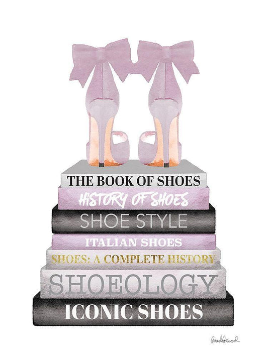 Lavender Bookstack Shoe White Modern Wood Framed Art Print with Double Matting by Greenwood, Amanda