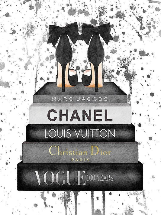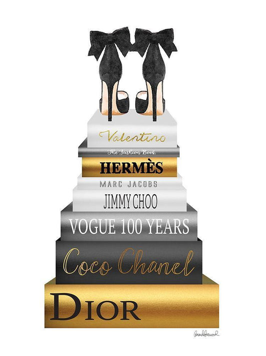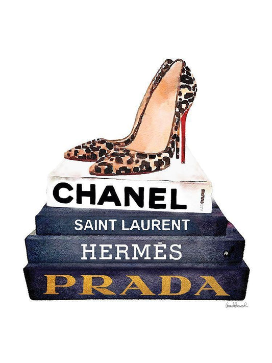 Book Stack Leopard Shoes White Modern Wood Framed Art Print with Double Matting by Greenwood, Amanda