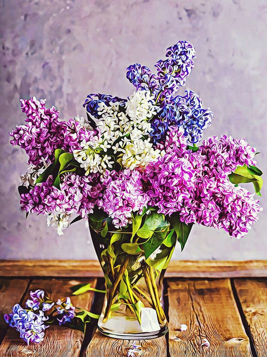 Lilacs in Glass Vase Black Ornate Wood Framed Art Print with Double Matting by Alpenglow Workshop