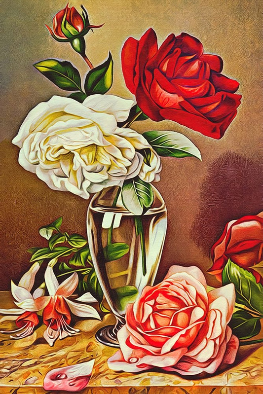Roses in a Glass Vase Black Ornate Wood Framed Art Print with Double Matting by Alpenglow Workshop