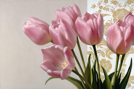 Pink tulips White Modern Wood Framed Art Print with Double Matting by Levashov, Igor
