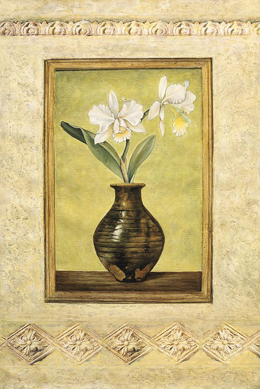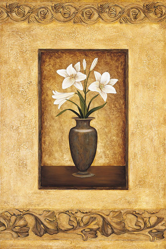 Still Life with White Flowers Black Ornate Wood Framed Art Print with Double Matting by Brighton, Grace