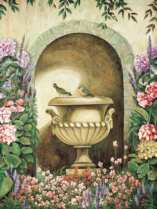 Garden Alcove I Black Ornate Wood Framed Art Print with Double Matting by Wright, Elizabeth
