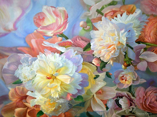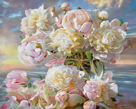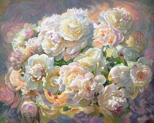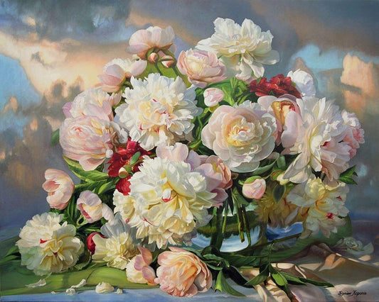 Peonies Dancing with the Clouds Black Ornate Wood Framed Art Print with Double Matting by Kopania, Zbigniew
