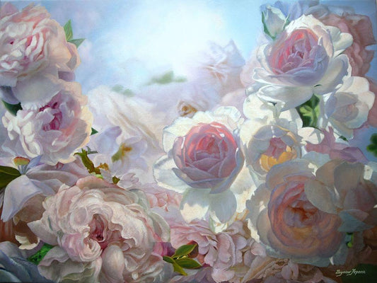 Roses full with the Light Black Ornate Wood Framed Art Print with Double Matting by Kopania, Zbigniew