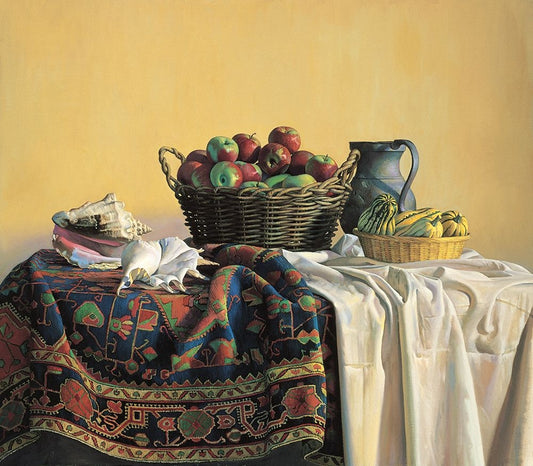 Apples And Pitcher Black Ornate Wood Framed Art Print with Double Matting by Unknown