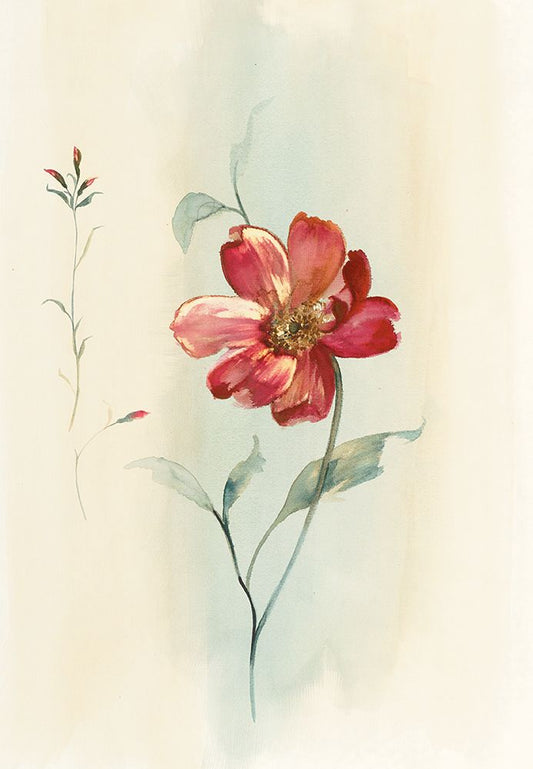 Modern Red Floral Black Ornate Wood Framed Art Print with Double Matting by Unknown