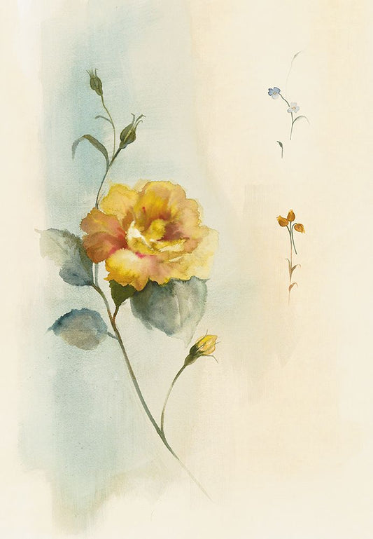 Modern Yellow Rose Black Ornate Wood Framed Art Print with Double Matting by Unknown