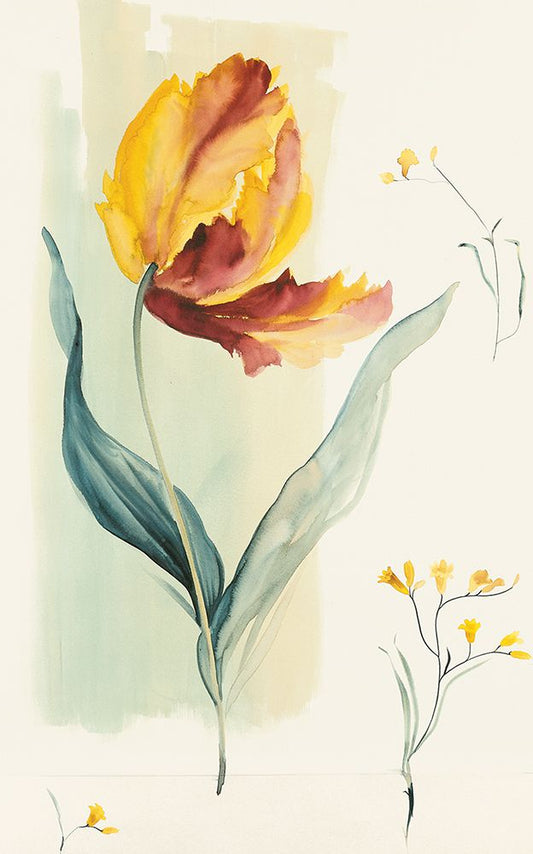 Yellow Exotic Floral Black Ornate Wood Framed Art Print with Double Matting by Unknown