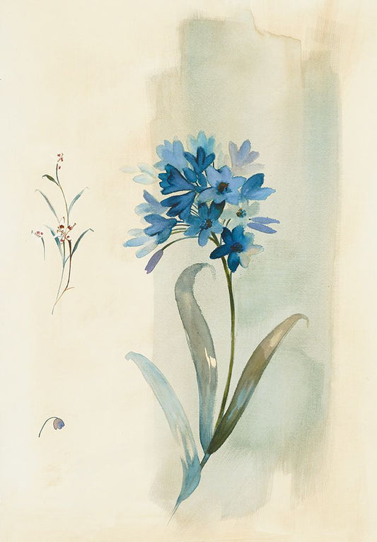 Modern Blue Floral Black Ornate Wood Framed Art Print with Double Matting by Unknown