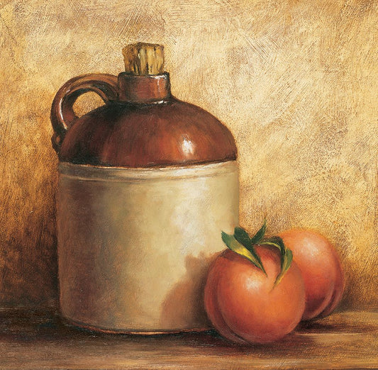 Jug And Peaches Black Ornate Wood Framed Art Print with Double Matting by Unknown