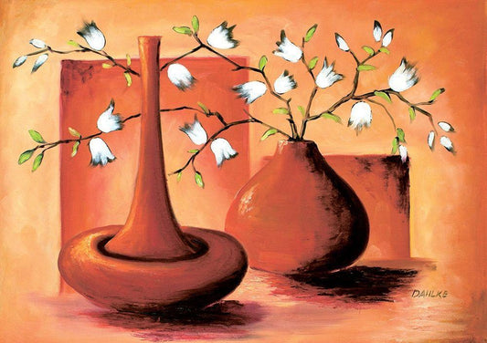 Peonies in Silver Pot II White Modern Wood Framed Art Print with Double Matting by Kopania, Zbigniew