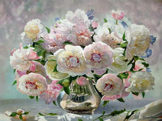 Peonies in a Glass Vase White Modern Wood Framed Art Print with Double Matting by Kopania, Zbigniew