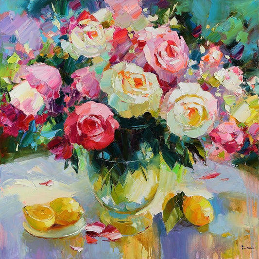 Flowers Fragrance White Modern Wood Framed Art Print with Double Matting by Bond