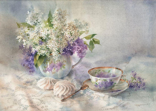 Tea with Lilac White Modern Wood Framed Art Print with Double Matting by Besedina, Anastasiia
