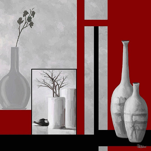 Stillife in Red and Grey White Modern Wood Framed Art Print with Double Matting by Medeiros, Celito