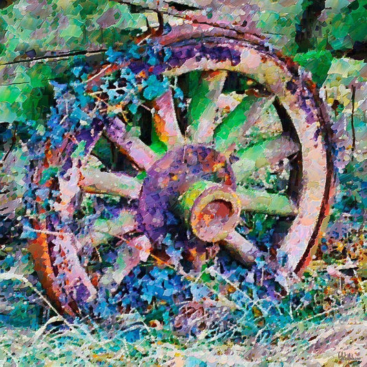 The Wheel with Flowers White Modern Wood Framed Art Print with Double Matting by Medeiros, Celito