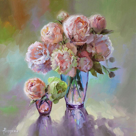 Peonies in a Square Space White Modern Wood Framed Art Print with Double Matting by Kopania, Zbigniew